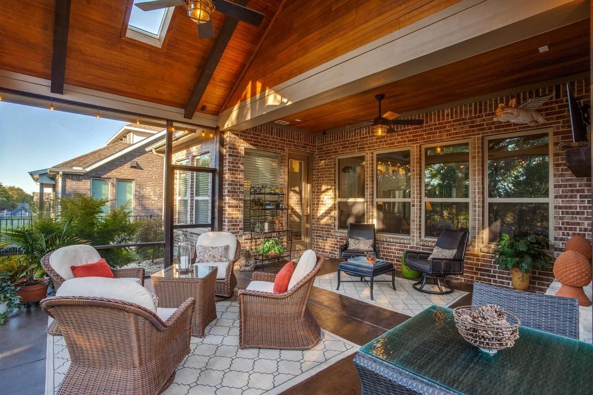 Enjoy the outdoors in comfort with a custom-designed screened porch, offering year-round protection and style.